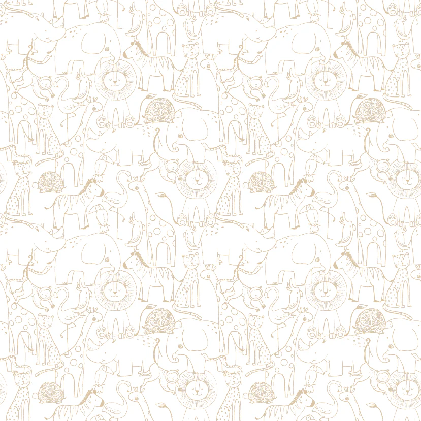 Introduce a gentle sense of adventure to your child’s room with the Hoopla Peekaboo Kids Animal Doodle Wallpaper in Parchment. This enchanting design features a charming lineup of hand-sketched safari animals, from lions and elephants to flamingos, giraffes and playful monkeys… all drawn in a delicate parchment-toned ink on a crisp white background. The result is a soft, neutral look with plenty of character, perfect for creating a calming yet imaginative setting in nurseries, bedrooms, or play spaces.