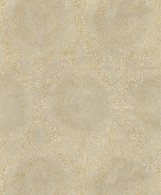 This wallpaper features a smooth, subtle textured finish in a warm beige or light tan tone. The design incorporates faint, cloud-like patterns that give it a slightly mottled appearance, resembling a delicate faux plaster or marble wash effect.