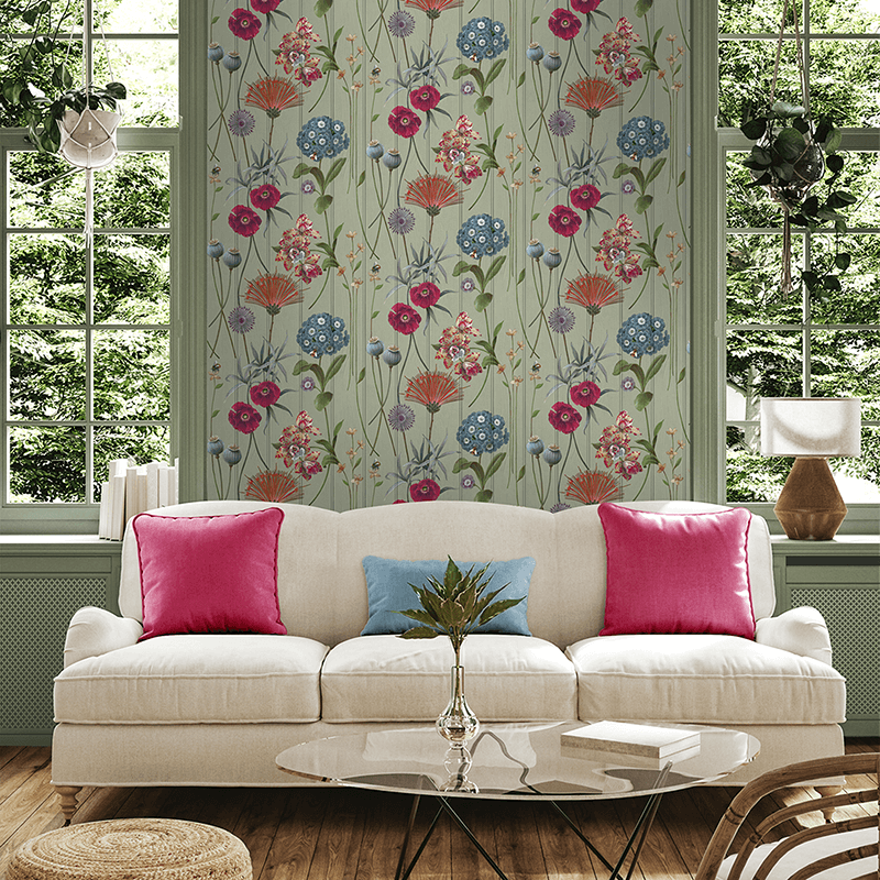 Create a fresh and inviting atmosphere with the Belgravia Decor Botanist Floral Sage Multi Wallpaper. Eye-catching blossoms make the Belgravia Decor Botanist Floral Sage Multi Wallpaper add a splash of colour to your walls. Striking red poppies and unique protea blooms take centre stage in this botanical wallpaper, complemented by other garden favourites on a soft sage, wood panel-effect background.