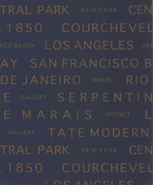 This wallpaper features a smooth, matte satin finish with a refined and sophisticated look. The design is composed of city names and cultural landmarks from around the world, such as: