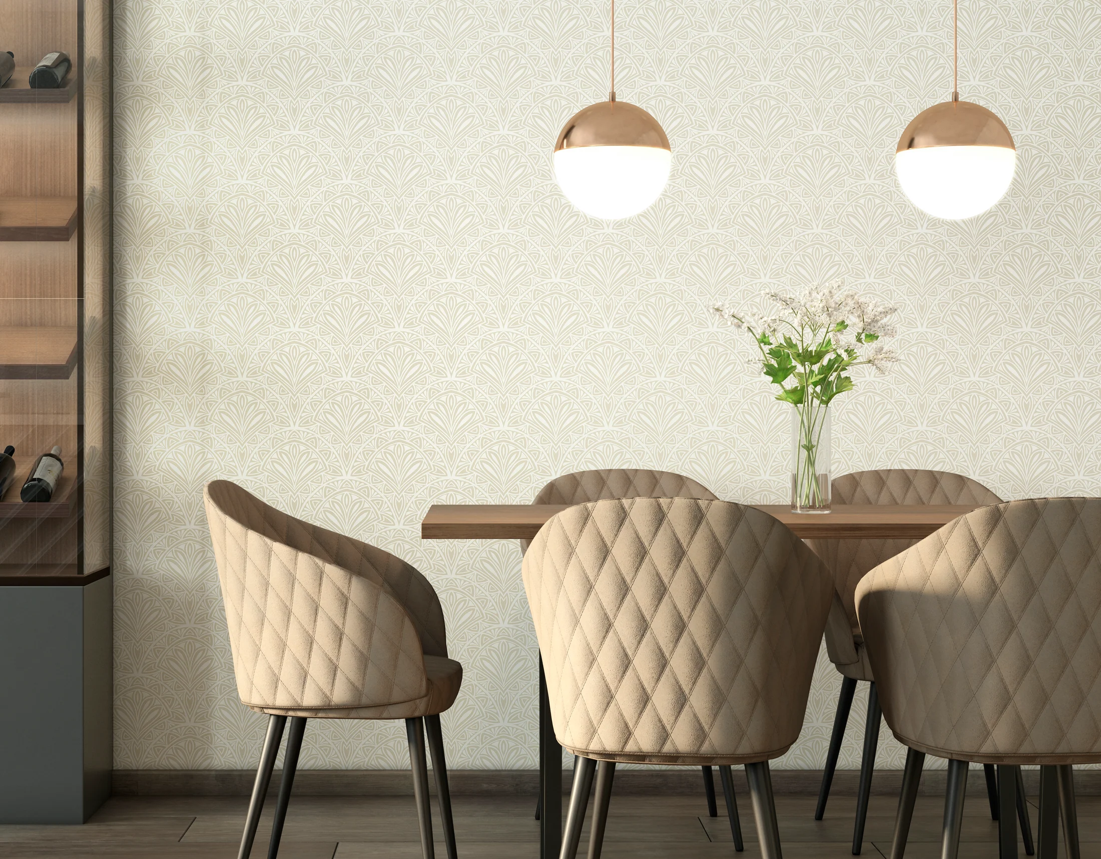 The Deco Fan wallpaper from the Hoopla Walls Elegance Collection brings a bold, decorative flair to your interiors, inspired by the iconic motifs of the Art Deco era. Featuring sweeping fan shapes and intricate detailing, this design forms a striking geometric pattern that captures the glamour and optimism of the 1920s. Presented in a versatile natural colourway, it offers both warmth and sophistication.