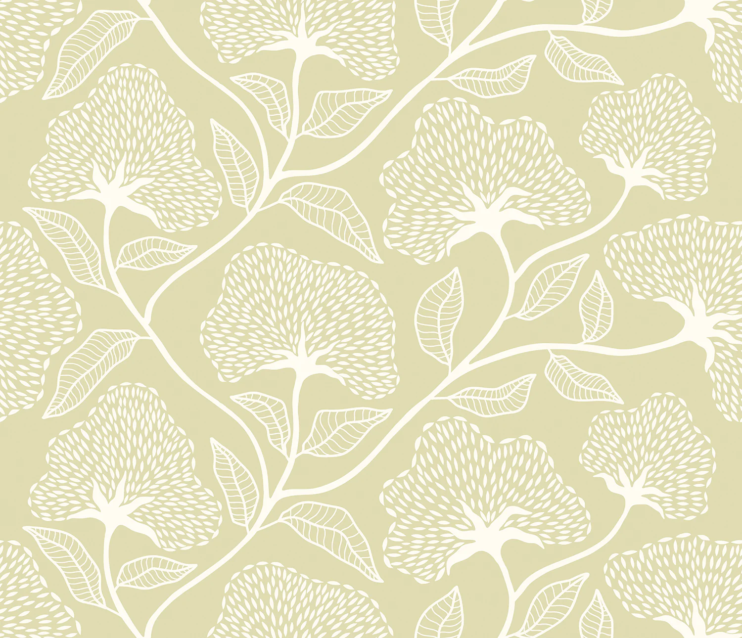 Hoopla Dash Trail Pear Wallpaper | Modern Green Floral Design