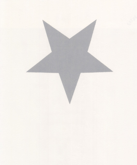 The wallpaper in the image features a simple, modern design with a large, stylized five-pointed star in a soft grey silver colour set against a light, neutral background. The star has sharp, clean edges and is centred vertically on the wallpaper. The background appears to have a very subtle, almost unnoticeable texture, giving it a slightly tactile quality, which is common for “paste the wall” wallpapers—these are typically made from non-woven materials that make them easier to hang and remove.